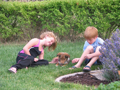 After the work was done, Larry and Shannon took Collin, Dresden and Logan to the movies. Natalie, Sydney and Jay went birthday shopping for Collin. John wanted to go swimming so we took Strider with us. I thought for sure he was going to like the swimming pool because he loves his baths, but he wasn't enjoying it too much. I think it was because he was very tired, it was his nap time.