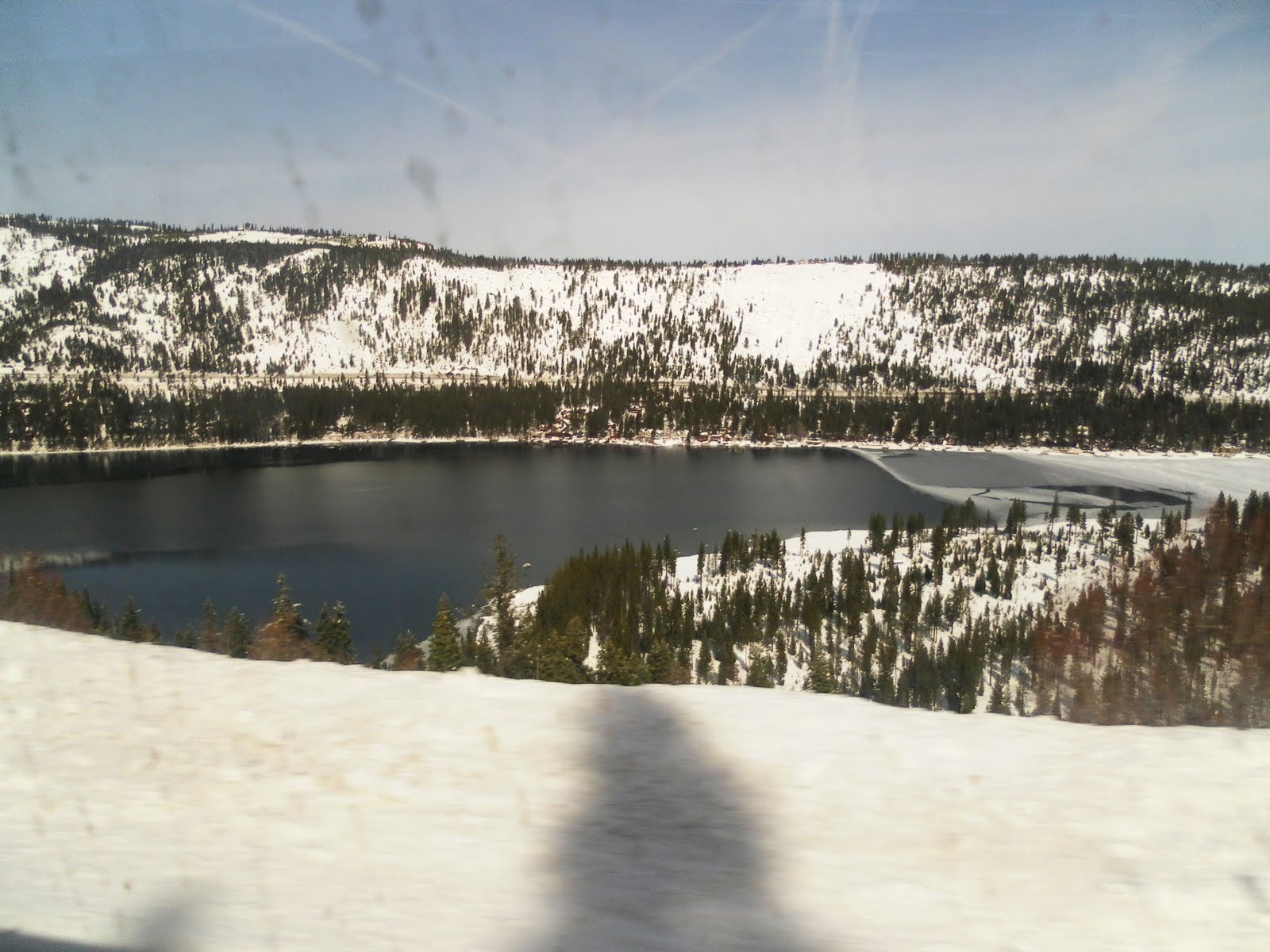 John has wanted to take a train ride for a long time so we decided to take a few days and go over Donner's pass in the winter. We heard that it was a beautiful ride, and we were not disappointed. This gentleman who is a volunteer gave us some interesting facts about the water sheds, the train sheds and Donner's pass.
